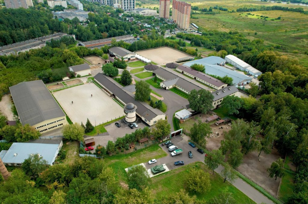 — кирпичная отапливаемая верхняя конюшня на 30 голов, автопоилки, мойка для лошадей с тёплой водой, развязки, амуничники, раздевалки, комната для хранения мюсли, санузел